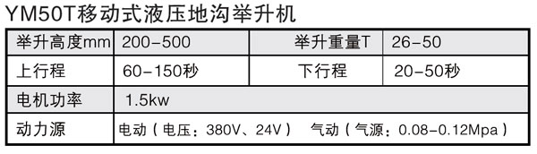 | 【產(chǎn)品名稱】:YM50T移動式液壓地溝舉升機 |